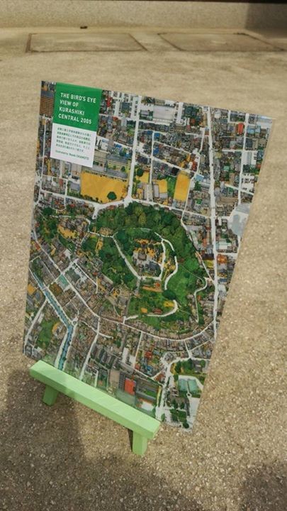 画家 岡本直樹氏が描いた倉敷鳥瞰絵図倉敷物語館の展示室では2005年版と1963年版の2種類が並べて展示してあります。