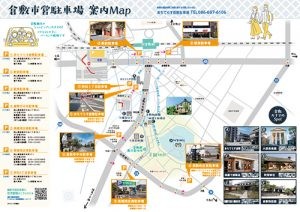 倉敷市中心部の市営駐車場へお越しの際は、下記の案内マップをぜひご利用ください。