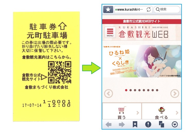 倉敷の観光スポットめぐりに便利な倉敷市公式観光サイト「倉敷観光WEB」のQRコードを駐車券に掲載しました。ぜひご利用ください。