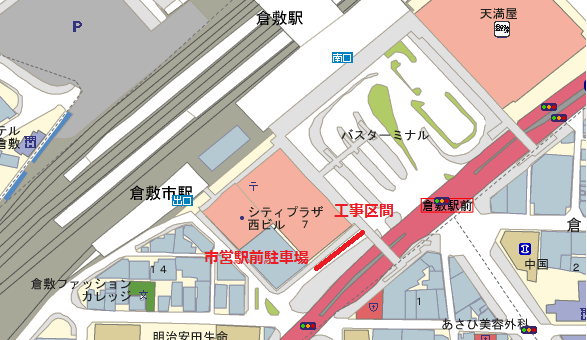 市営駅前駐車場隣接の西ビルの改修工事に伴い、工事用車両の停車による西ビル南側道路の渋滞が予想されます。ご利用者様にはご迷惑をおかけいたしますが、市営駅前駐車場へは国道429号(旧2号)からのご入場にご協力頂きます様、よろしくお願い致します。